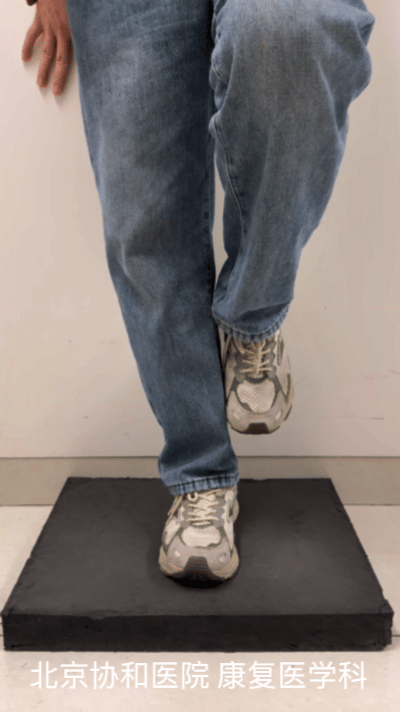 平地(或找一个台阶,前脚掌踩在上面),做快起慢落的练习。反复做10次,休息30秒,共做2-3组,每天1-2次。